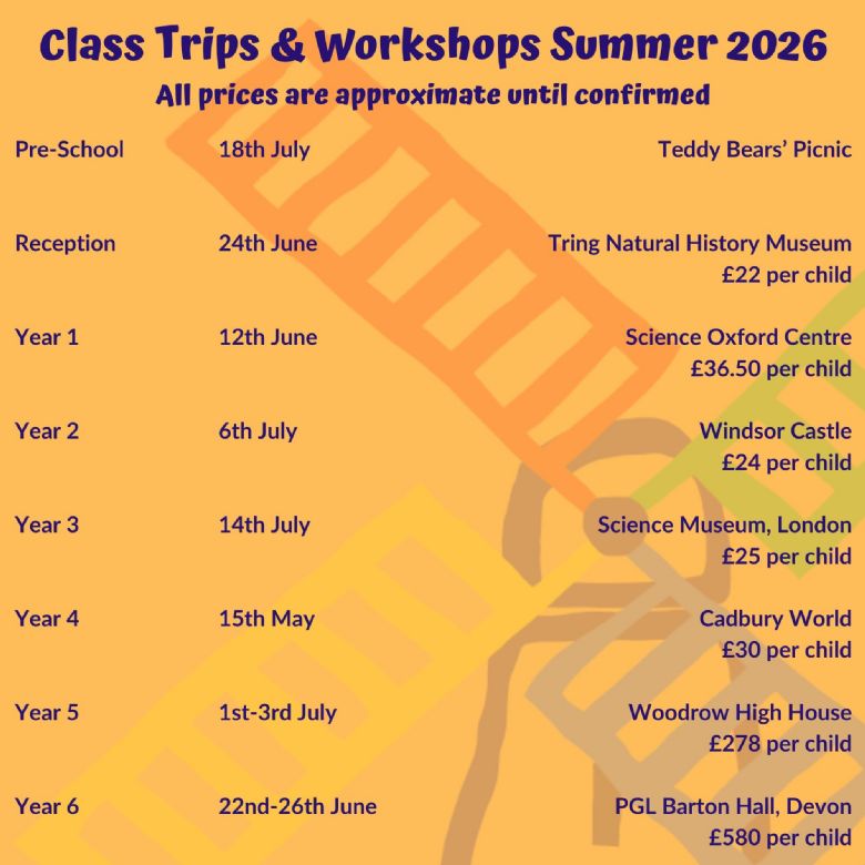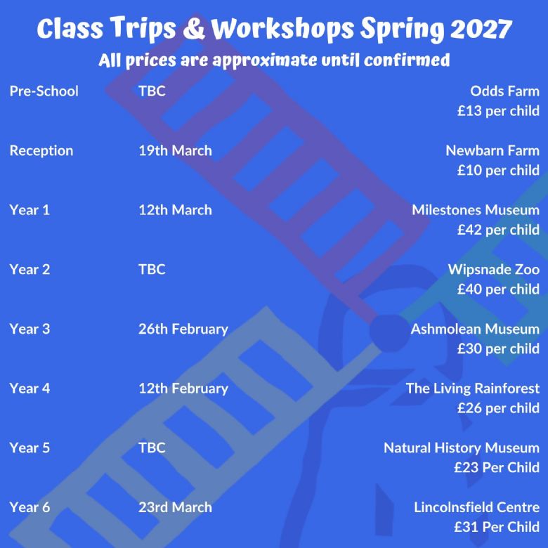 Each school year, we try to enrich our pupils' learning by arranging a mixture of school trips, workshops and visits. We only ever charge enough to cover our costs, to adhere to our 'Charging & Remissions Policy', which you can find in our 'Policies' area on the website. I'm sure you'll agree, the range we can offer is vast, our children all enjoy and benefit from these events.