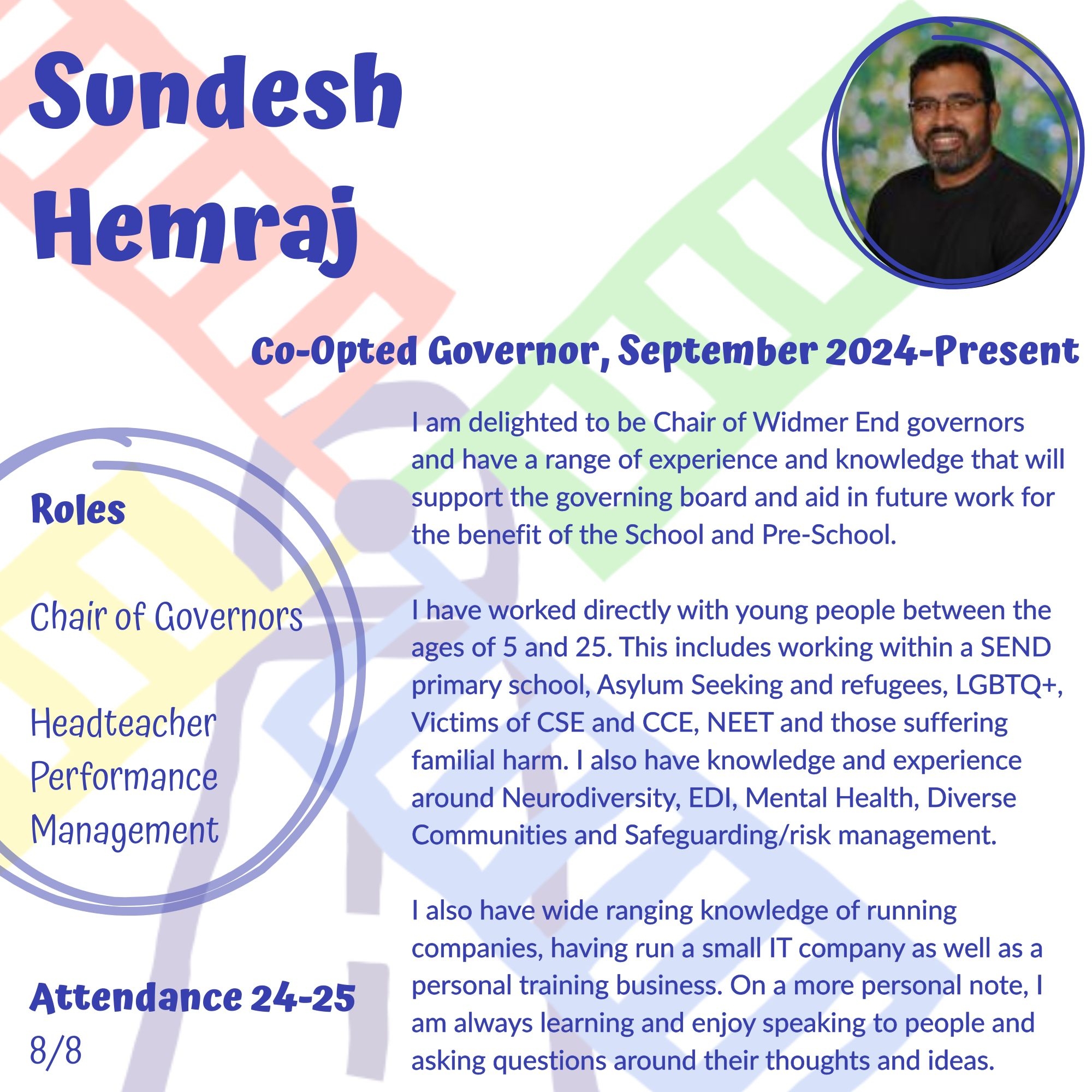 | Mr Sundesh Hemraj | Co-opted Governor (Chair) |